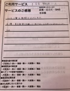 完全口コミで当店をお知りになり、この度ご利用頂きました!