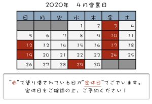 2020年 4月定休日カレンダー♪