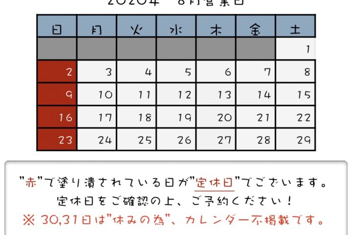 お知らせ 定休日のお知らせ! 2020.07.29